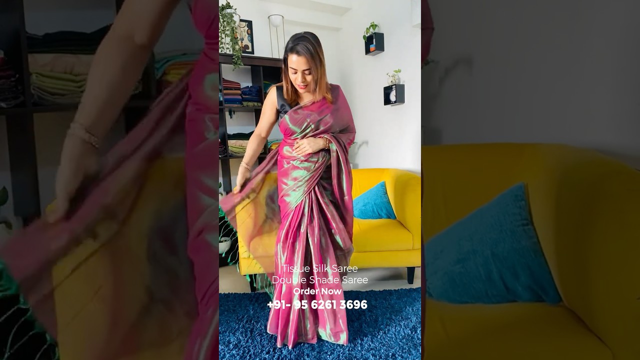 Introducing our exquisite Tissue Silk Saree in a stunning Magenta and Green shade, perfect for any festive occasion or elegant gathering. This luxurious saree drapes beautifully, showcasing a delicate balance of vibrant colors that will enhance your natural grace. The lightweight fabric ensures comfort and ease of movement, while the intricate design adds a touch of sophistication. Complete with a matching blouse, this saree is a timeless addition to your wardrobe that reflects the essence of traditional charm fused with contemporary aesthetics.